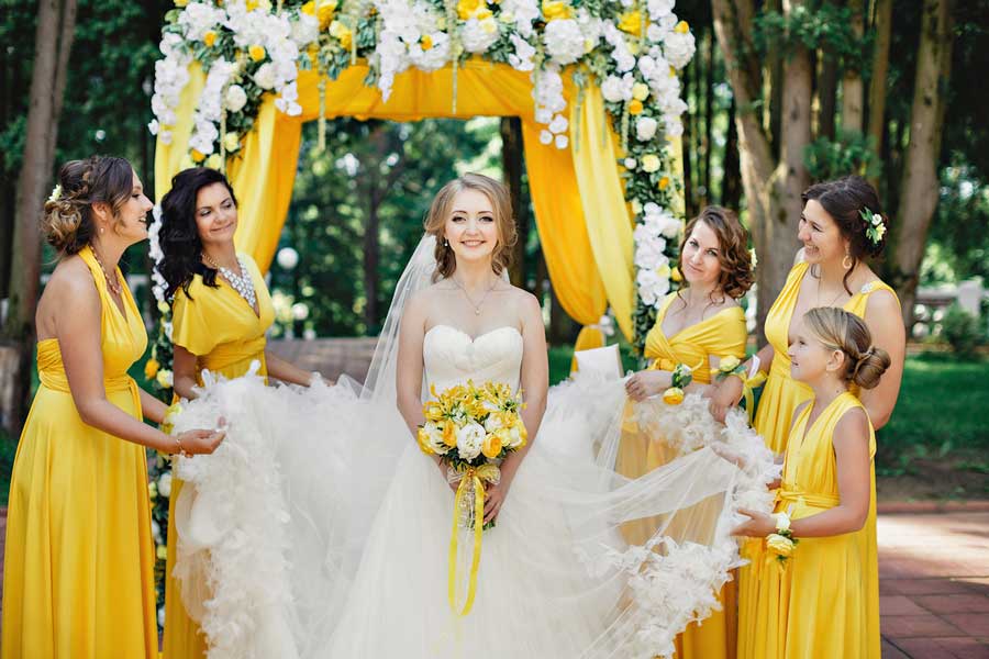 Желтый цвет чаще выбирают люди добродушные, оптимистичные. Они занимают активную жизненную позицию, а сфера их интересов очень обширна. Если вы любите желтый, ваша пара легка на подъем, любит хорошие компании, новые путешествия. Вы свободны от стереотипов и полагаетесь на свое мнение. Желтая свадьба пройдет особенно удачно, если невеста ждет ребенка. Этот цвет положительно влияет на исход родов.