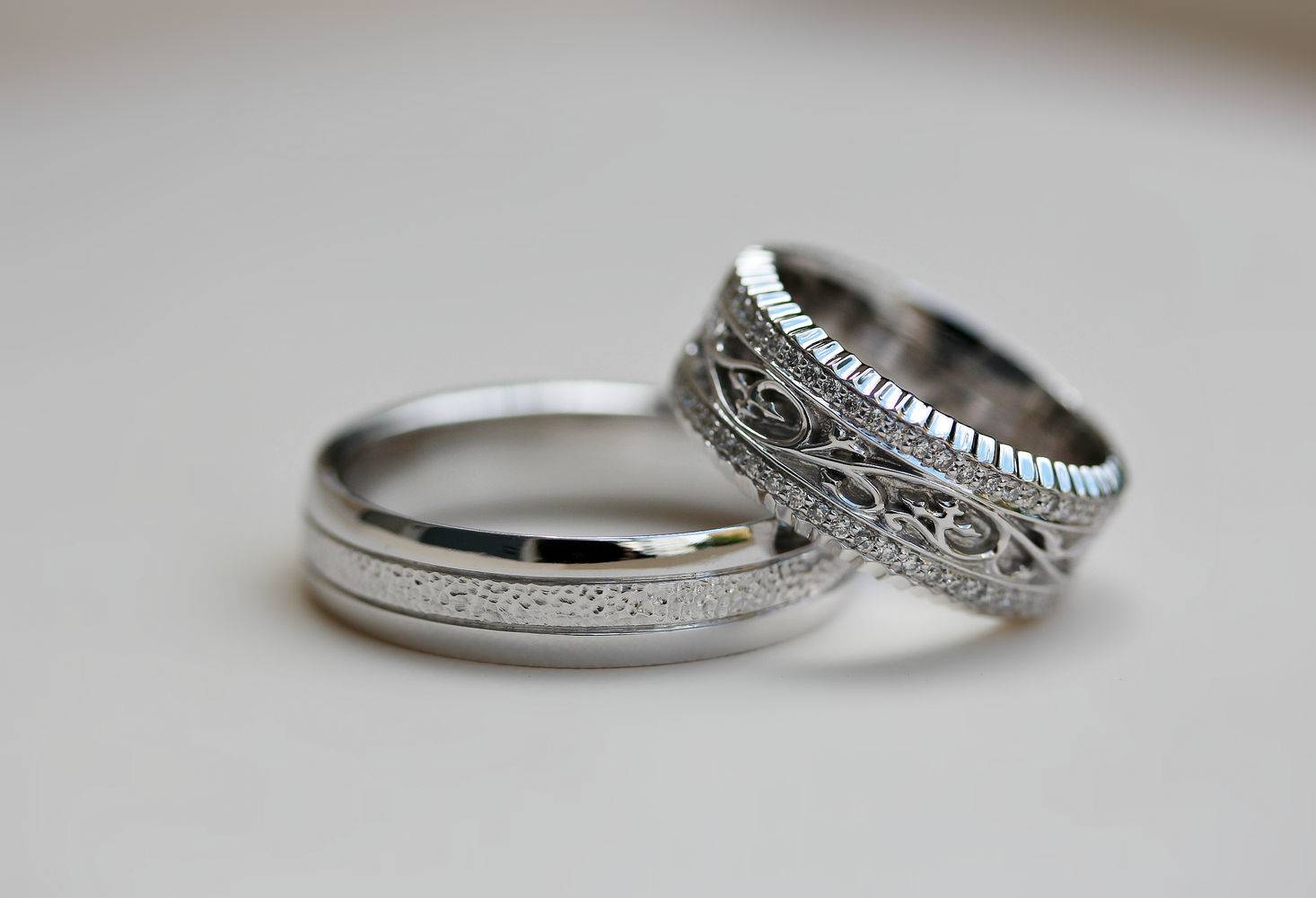 Обручальные кольца из белого золота с бриллиантами и их фото