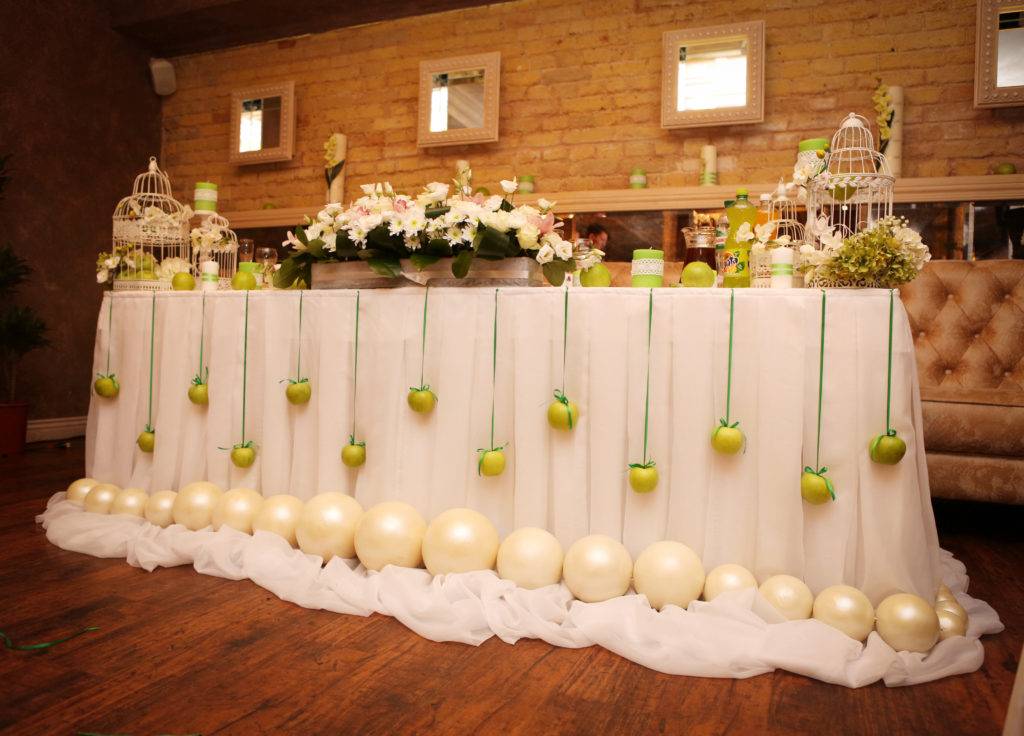На этом этапе нужно определить, что и чем мы будем украшать. Обязательным элементом является оформление стола молодоженов и заднего плана за ним.