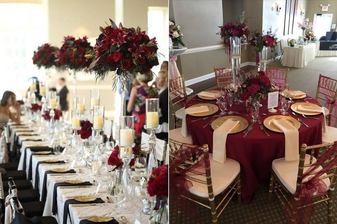 Оформление столов гостей на свадьбе марсала 2021 фото