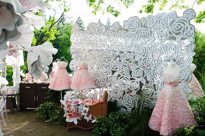 На фотографиях не должно быть видно столов, поэтому место для фотосессий либо организуют поодаль от них, либо отгораживают с помощью свадебных ширм, тканей или других материалов. Если свадьба проходит на природе, то место для фотосессии можно организовать на отдельной живописной полянке.