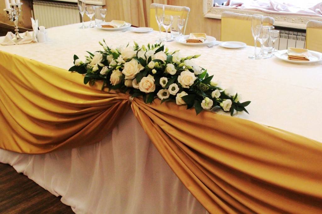Как украсить стол молодоженов своими руками тканью
