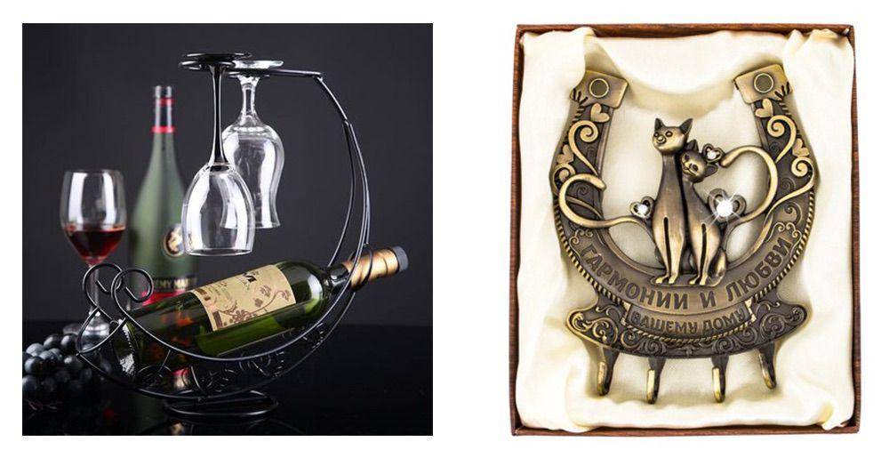 Прекрасной альтернативой дорогим изделиям станут металлические статуэтки, вешалки, шкатулка для мелочей, держатель для вина и бокалов.