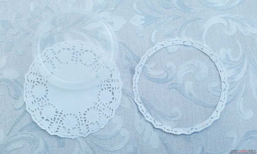 - В середине подушечки прикладывается широкое двустороннее кружево. Его крепят с помощью ниток или клея.