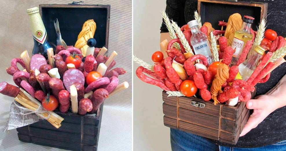 Снеки и пиво можно оформить не только в виде букета, прекрасно такой подарок смотрится в коробке, в деревянном ящике и даже в корзиночке. Пиво можно заменить вином, коньяком. Виски «Джек Дэниэлс».