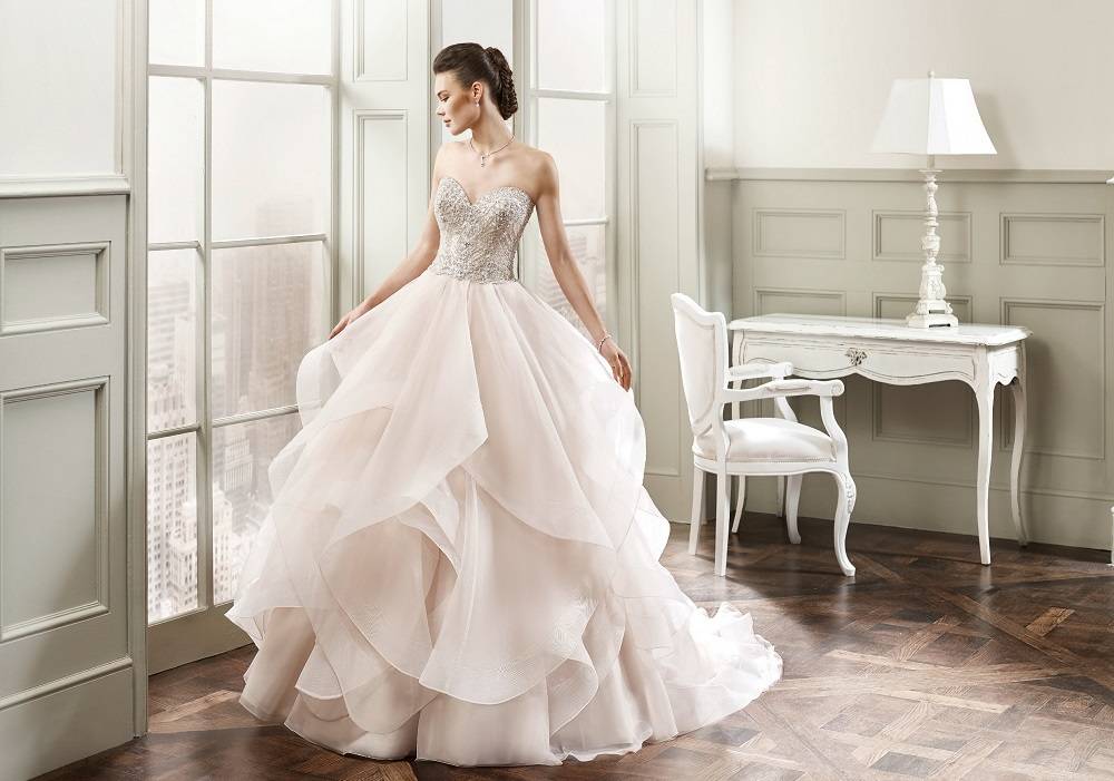 В свадебной моде распространена не только белая, но и цветная органза. Она встречается как в пастельных, так и контрастных оттенках. Благодаря своим переливам ткань выглядит празднично в любом цвете.