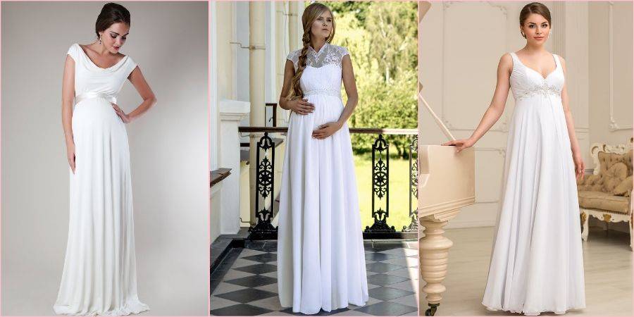 - это незаменимое одеяние для свадебных церемоний: во-первых, оно выглядит шикарно, во-вторых, подобные торжества отмечаются очень долго, в нем девушка сможет дольше чувствовать себя комфортно, главное, чтобы ничего не сдавливало животик.