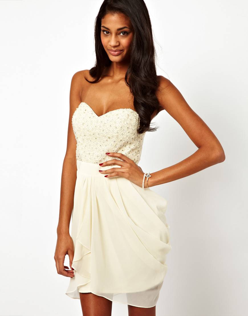 Если ваше платье оттенка близкого к белому, то нужно одеть яркий шарфик, брошку, бусы. Платье не должно быть слишком коротким, с глубоким декольте.