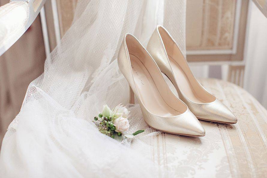 Обувь должна быть скромной и удобной, на невысоком каблуке, так как невесте придется много стоять. Лучше всего дополнить красивое венчальное платье классическими изящными лодочками в цвет, без броского декора или же ботильонами, если венчание происходит в холодное время года. В храме не приветствуются такие модели обуви, как: