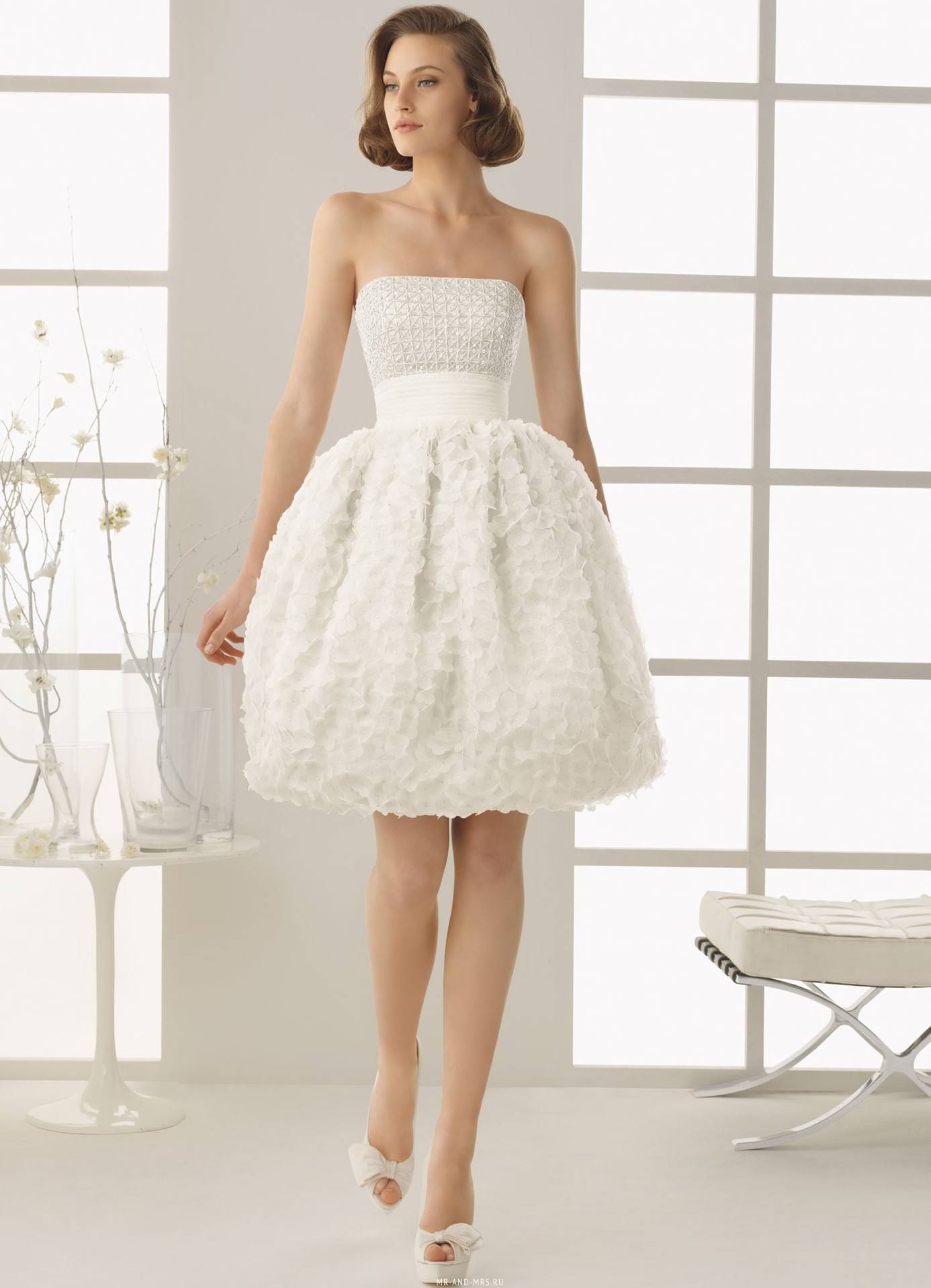 - короткие платья для свадебного танца и дискотеки на банкете;