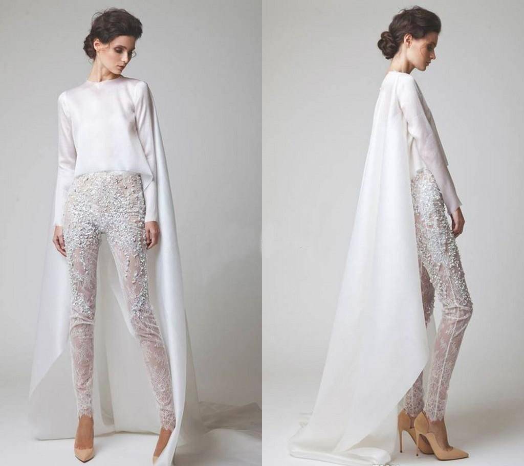 Более смелые невесты могут выбрать костюмный вариант и стать ультрасовременной. Поверьте, такой выбор ваши друзья оценят по заслугам. Также и с короткими платьями. В последнее время очень модными стали накидки из разных тканей, которые подчеркнут вашу индивидуальность.
