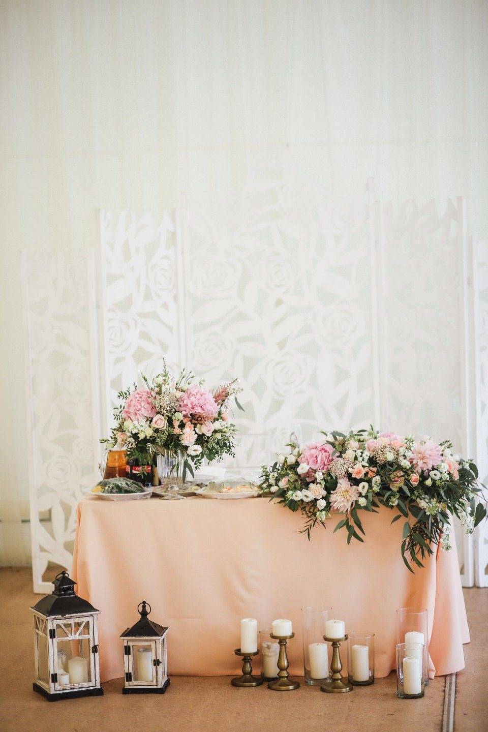 Полноценно передать колористику свадьбы можно с помощью правильно подобранного декора. Поэтому пудровый оттенок должен присутствовать в главных элементах оформления праздника: от выездной росписи, если такая планируется, до украшения банкетного зала. В случае выездной регистрации пудровыми могут быть: