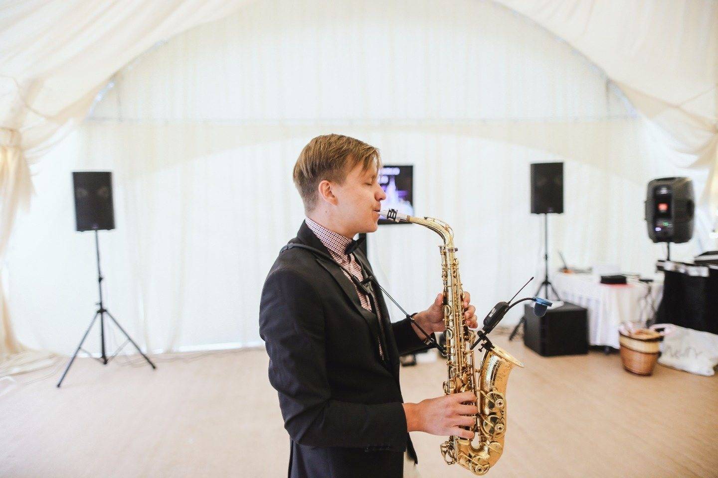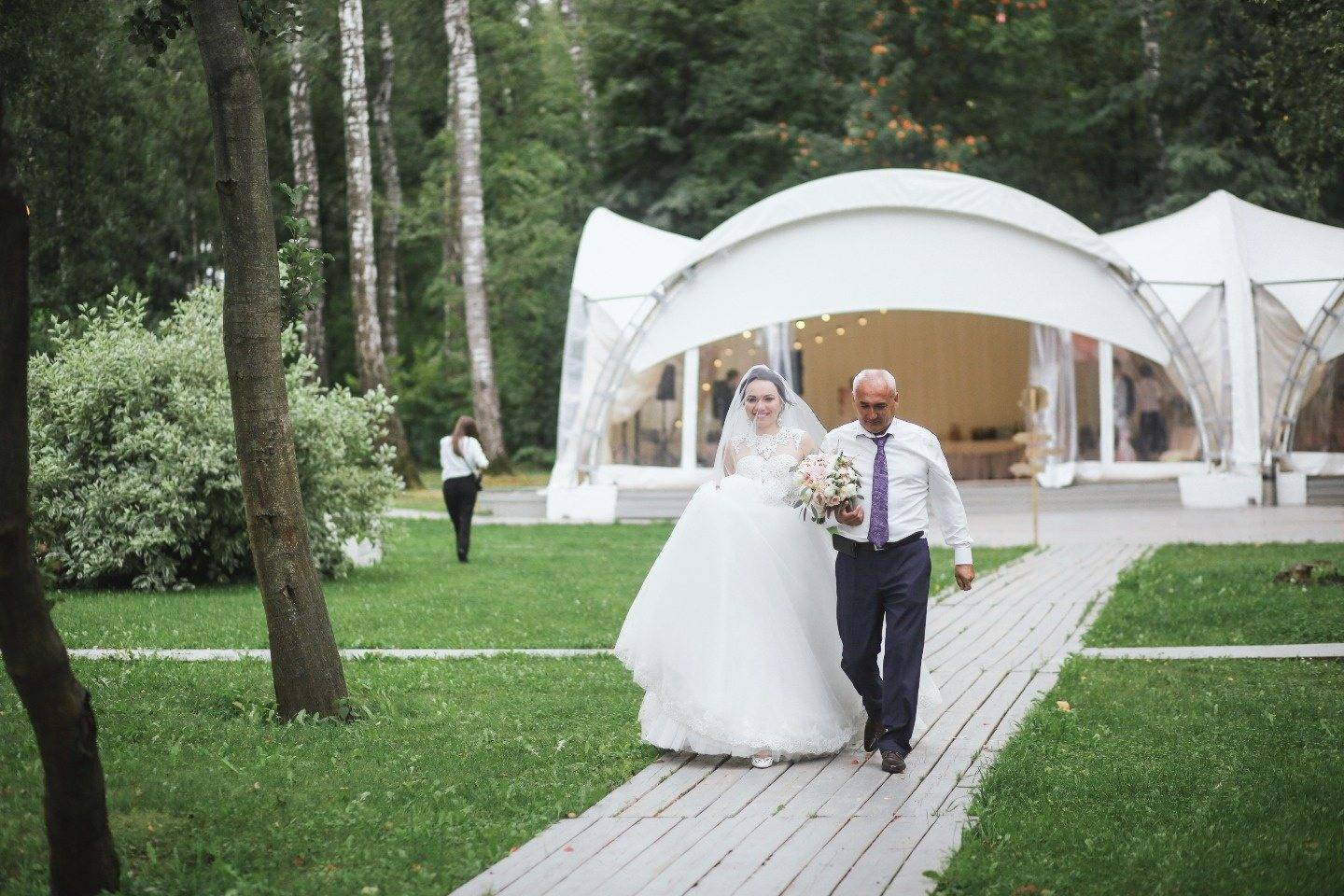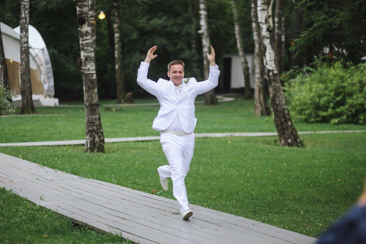 Встреча с женихом стала лучшим моментом всего свадебного дня. После фотосессии в номере отеля мы поехали в усадьбу Марфино. Во время нашей прогулки для гостей начался фуршет, где играл саксофонист, настраивая их на праздничную атмосферу.