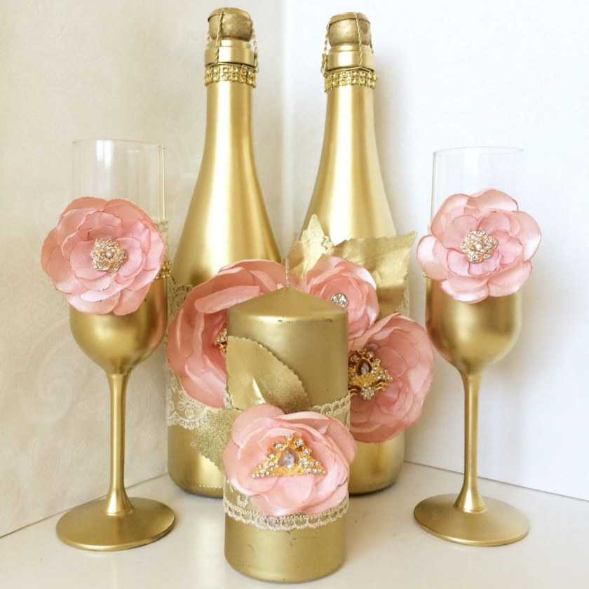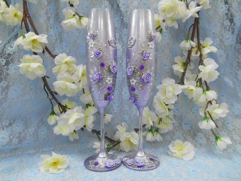 Непосредственно рабочий процесс украшение бокалов на свадьбу своими руками будет включать следующие этапы: