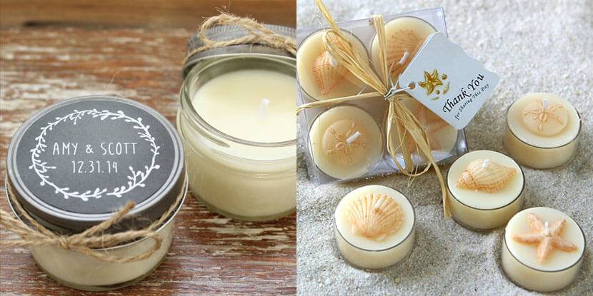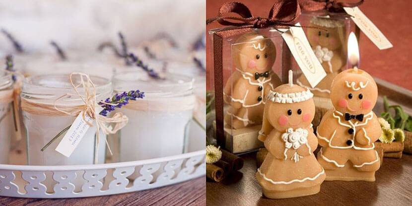 Ароматизированные свечи, будут приятным запахом напоминать о торжестве. Это один из самых простых сувениров для гостей торжества. Поэтому если вы задаетесь вопросом, что подарить гостям на свадьбе максимально просто — то этот вариант для вас. Плюсом в копилку такого выбора будет то, что свечка – это полезный сувенир, и обязательно пригодится в хозяйстве. Можно также красиво упаковать ее в оберточную бумагу или пакетик.