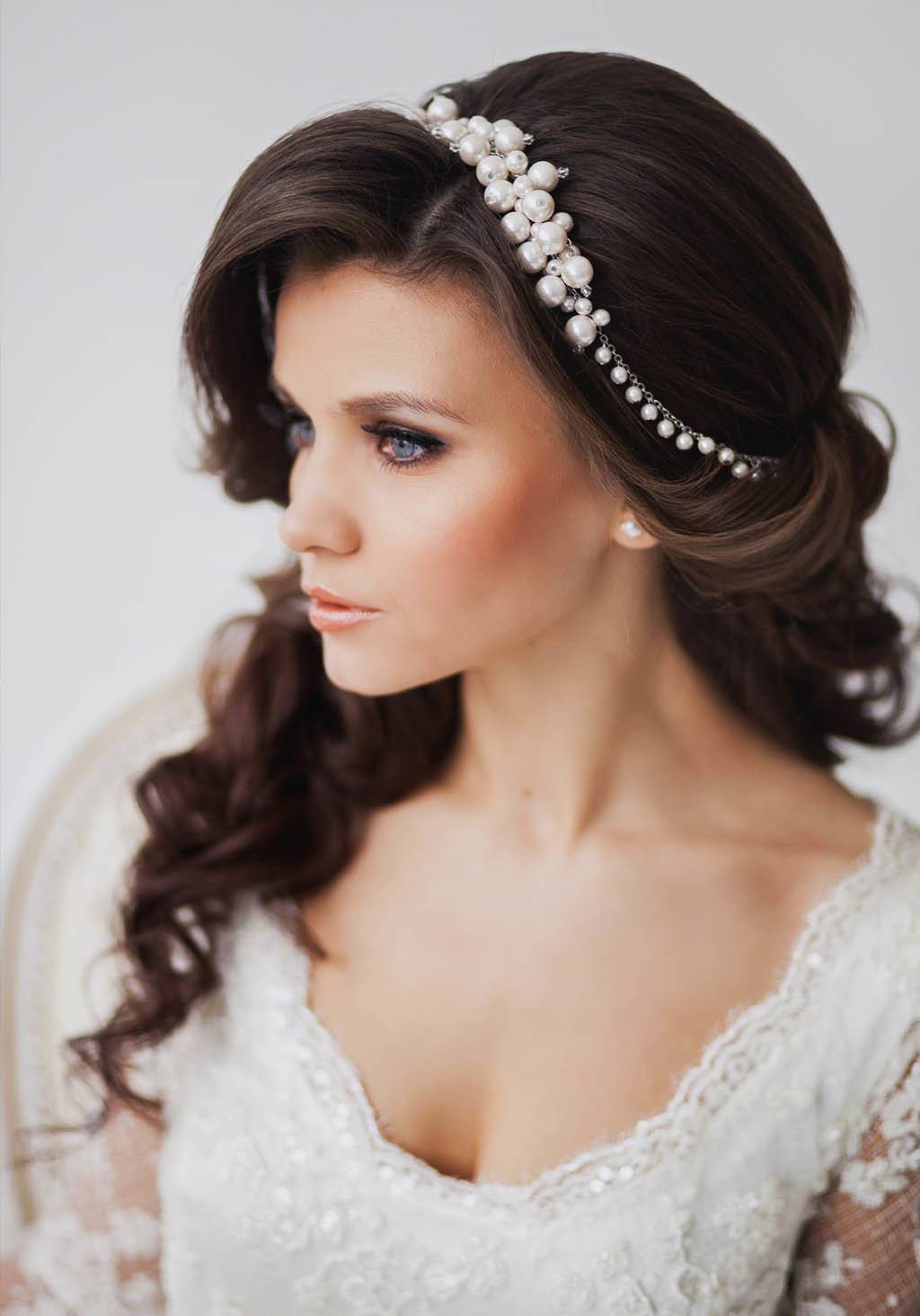 Свадебные прически на длинные волосы сами по себе красивы и праздничны, но можно дополнить ее еще заколками и украшениями. Среди аксессуаров пользуются популярностью гребни, диадемы, жемчужные нити и шпильки.