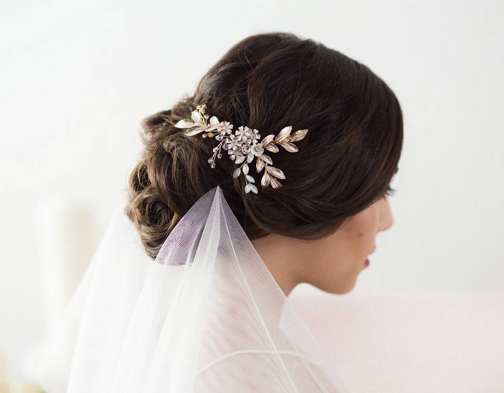 Цветы, заколки и гребни в волосах невесты всегда в тренде. Любая свадебная прическа смотрится с таким украшением нарядно и празднично.