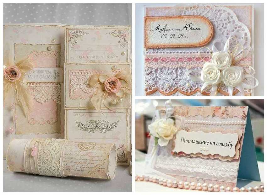 До 90% всех приглашений мастерят именно этим методом. Благодаря разнообразию материалов можно воплотить в жизнь практически любую оригинальную идею автора или новобрачных. Соблюдайте следующую последовательность действий: