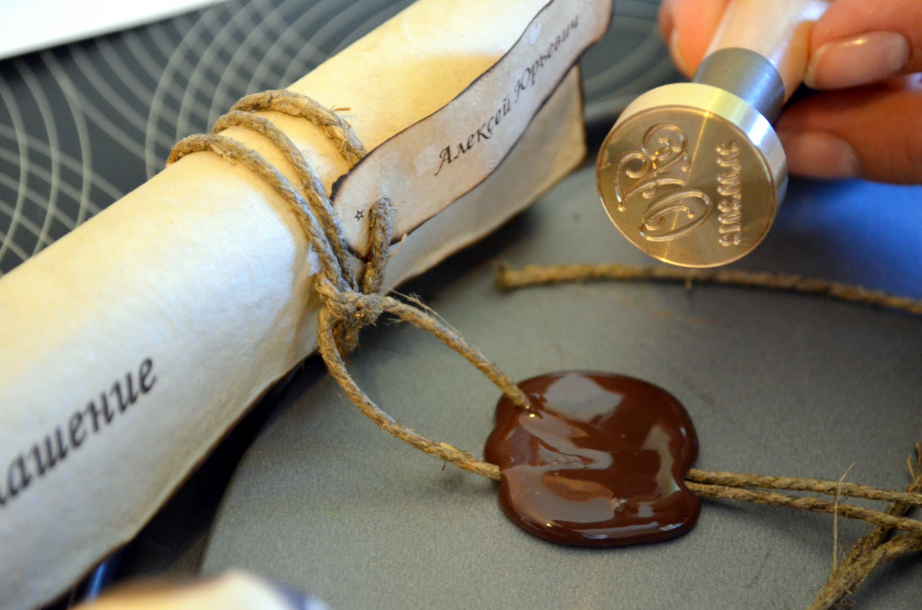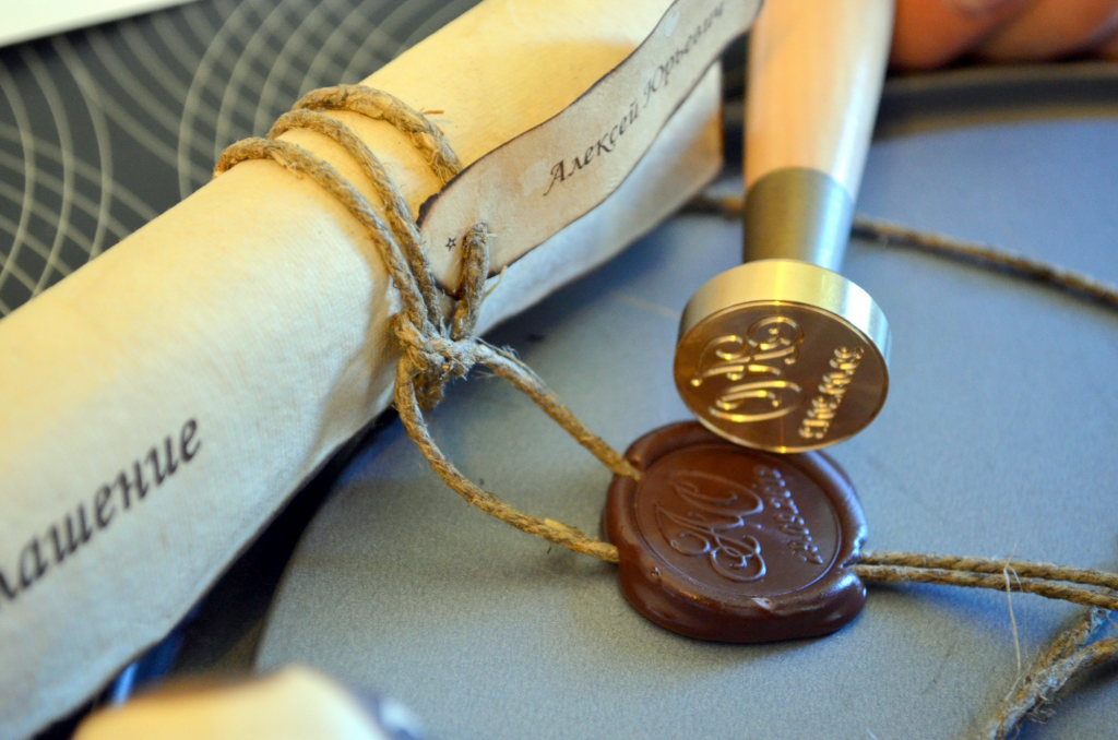Пригласительные-папирусы выглядят достаточно таинственно, ведь разворачивая состаренную бумагу, мы будто прикасаемся к чему-то вечному