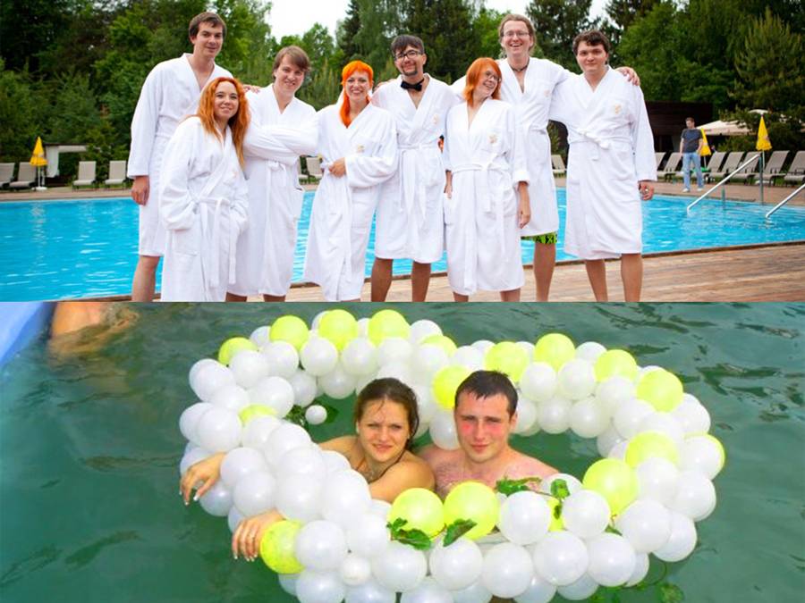 Можно арендовать открытый бассейн и там освежиться и продолжить конкурсы, игры и фотосессии.