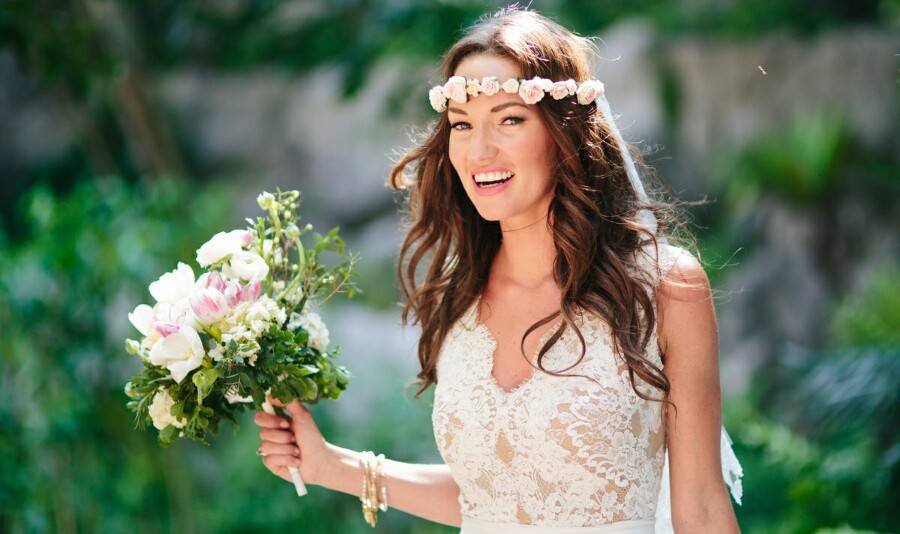 - Без фаты и венка будущей супруге не разрешается украшать прическу цветами.