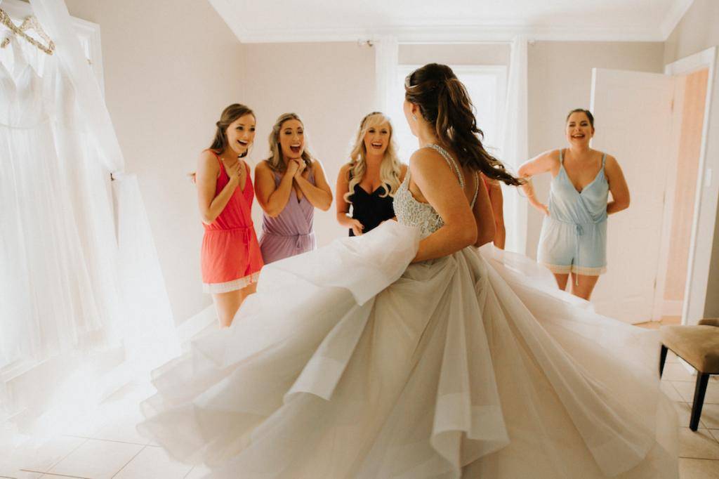Подругам невесты запрещено примерять свадебный наряд или головной убор, так как они могут забрать ее семейное счастье.