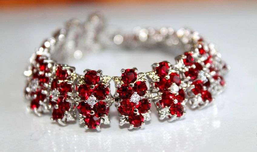 - Ювелирные украшения, которые содержат рубин, это может быть брошь, серьги, кольцо, подвеска или браслет. Безусловно, такой подарок подойдет только даме. Для мужчины можно выбрать запонки с рубином.