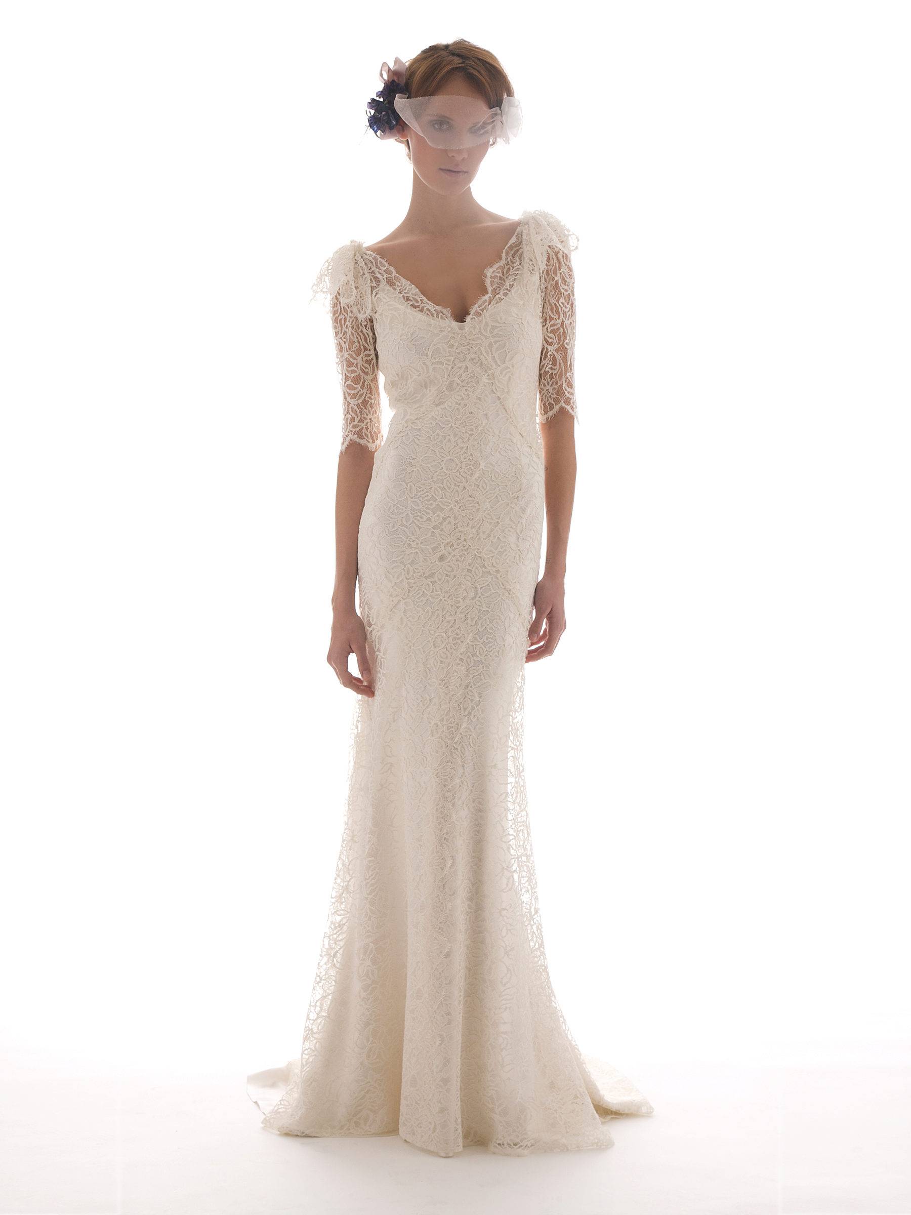 Модели без шлейфа дарят невесте комфорт и свободу движений. Рукава выбирают различного вида.