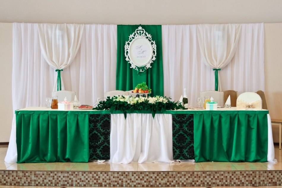 Если изумрудные оттенки к лицу невесте и жениху, то свадебный наряд можно пошить из ткани насыщенного цвета – это будет поистине королевский выбор. Отлично подойдут такие материалы, как атлас, бархат, нежное кружево и шелк, воздушные ткани и натуральный хлопок.