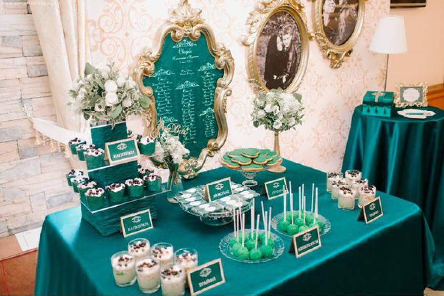 - Стол и меню – требует той же тщательной подготовки, что и свадебный стол 55 лет назад. Стол должен быть богатым, полным угощений и напитков, украшенный цветами, свечами и свадебным декором.