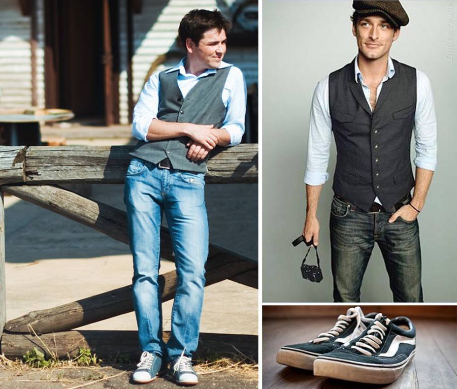 - Рубашка-жилет-галстук-брюки. Не слишком классический, но довольно нарядный комплект. Если правильно подобрать цвета (а они могут быть не только черно-белыми) и галстук-бабочку, получится очень стильный жених. Такой наряд и для фотосессии отлично подойдет.