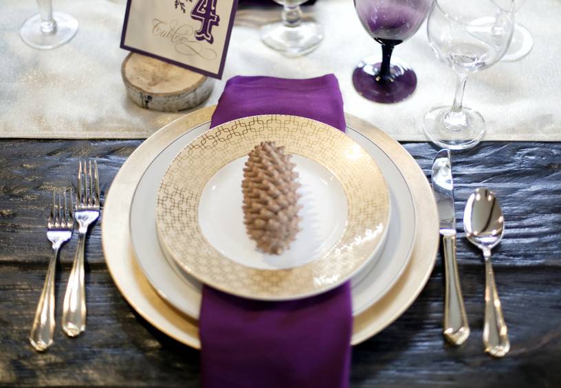 Если же ты видишь, что приборы и бокалы категорически не подходят, подбирай посуду специально для свадебного ужина — идеальная картинка стоит дополнительных хлопот! Принцип многослойности в посуде всегда выигрывает. Две или три тарелки смотрятся всегда более интересно и выигрышно, чем одна универсальная. Тарелки могут быть различными не только по цвету, стилю, но и материалу. Например, стекло и керамика, плотный пластик и глина.