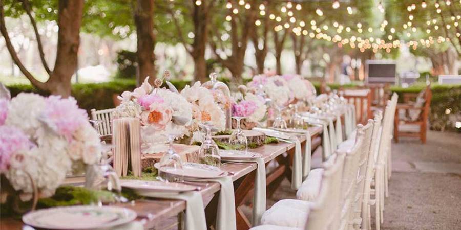 Выберите красивое место на природе, оно может быть в лесу с большой лужайкой, около речки или озера. Прямо на улице расставьте столы под шатрами или навесом, которые спасут Вас, если вдруг пойдет дождик. Декором послужит сама природа – цветение деревьев, свежая зеленая трава, солнечные лучики и, конечно, цветы.
