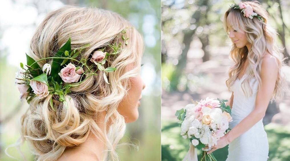 Вот лишь небольшая подборка фото свадебных причесок. Видите, все они украшены венками из живых цветов, это смотрится невероятно красиво. Старайтесь для украшения волос выбирать цветы пудровых цветов, оттенки которых Вы используете на своей свадьбе.