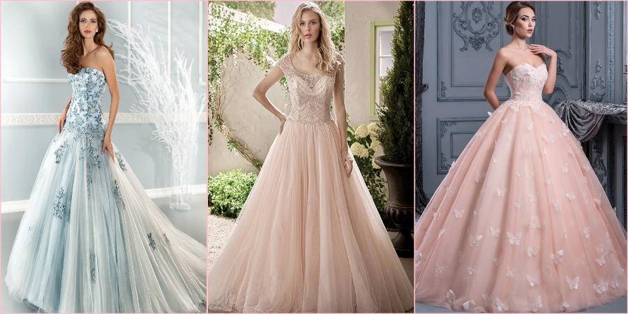 Весной и летом 2017 года мягкий голубой станет хорошей альтернативой если вам не нравится розовый, но вы хотите красивое цветное свадебное платье необычного цвета.