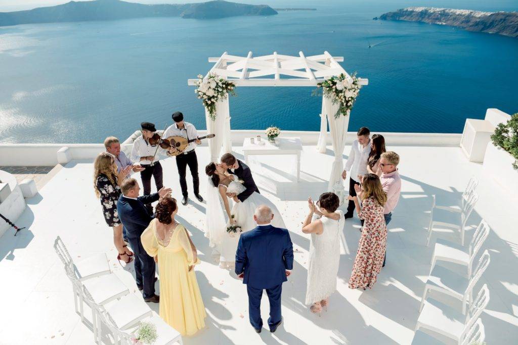 Рекомендуется приглашать на торжество только самых близких людей, чтобы не делать из трепетного и романтического события обычный банкет. Процесс осложняется еще и тем, что не все смогут попасть на торжество из-за работы. Свадьба в Греции для двоих – один из наиболее распространенных вариантов.