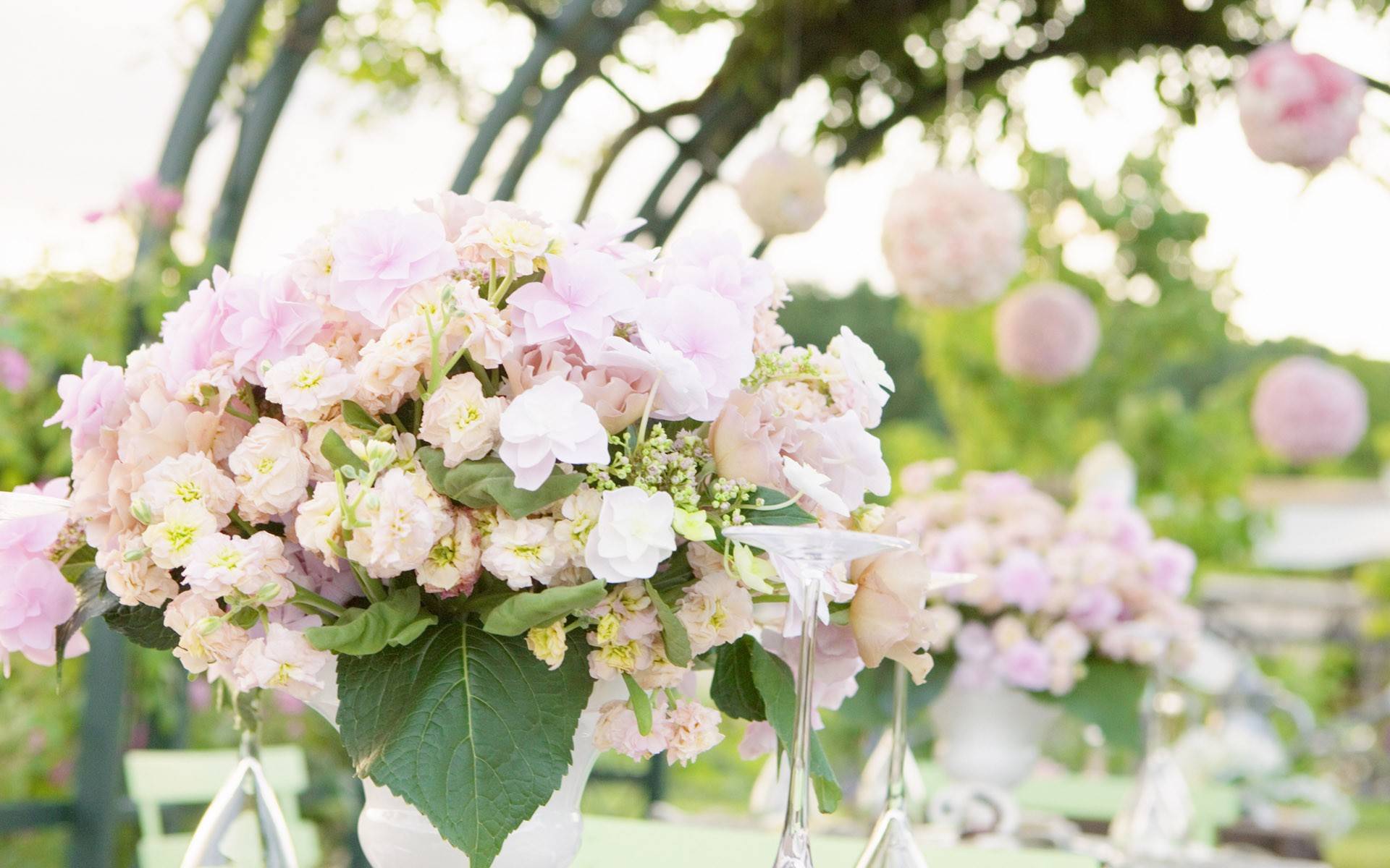 Некоторые делают огромную ошибку, пытаясь на июльской свадьбе буквально всю зону праздника буквально заполнить букетами.