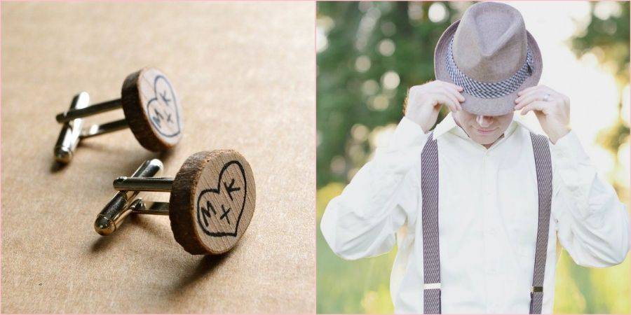 Бутоньерка из полевых цветов или колосков пшеницы, яркая бабочка, запонки из дерева и шляпа, помогут завершить нужный образ мужчины.