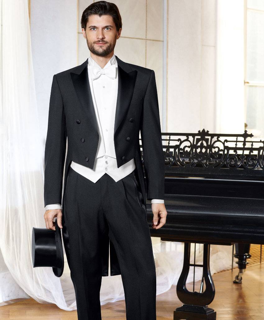 Образ жениха, как правило, создают с помощью камзола или фрака. Воротник-стойка, жабо или шейный платок превратят любого мужчину в настоящего аристократа. При желании можно раздобыть военную форму времен Наполеона. Вполне уместен будет и традиционный костюм-тройка с бабочкой.