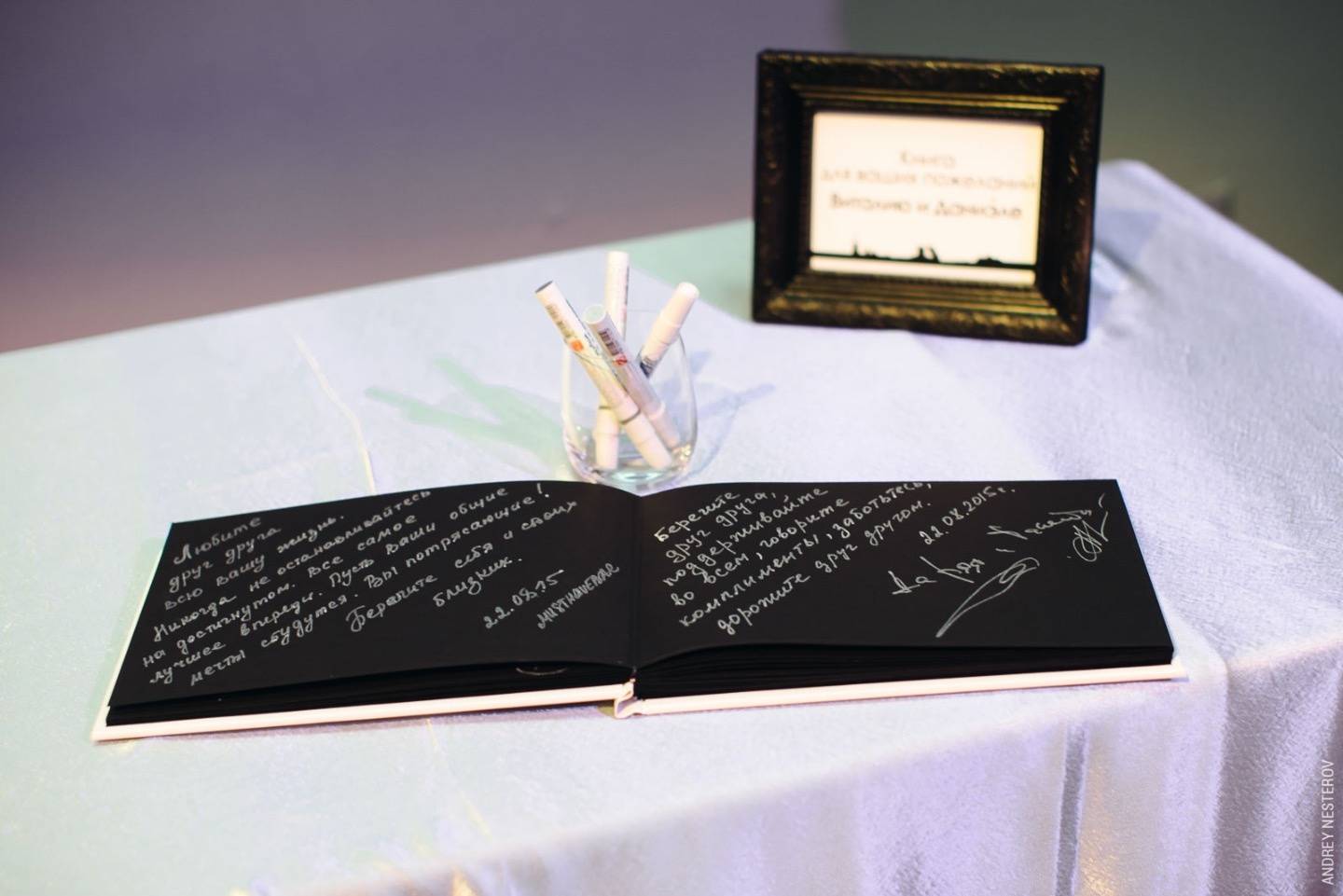 Классическое сочетание черного и белого цветов, легендарный Aston Martin DB5, сигары — эти детали создали стиль «утонченной бондианы», в котором прошла свадьба. Стильная, элегантная, изящная — именно так ее можно описать в трех словах. Свадебный день начался с непринужденной прогулки по любимым местам — у Инженерного замка и цирка на Фонтанке. После красивой фото- и видео-прогулки состоялась торжественная регистрация во дворце на Английской набережной, где много лет назад создали свои счастливые семьи наши родители.