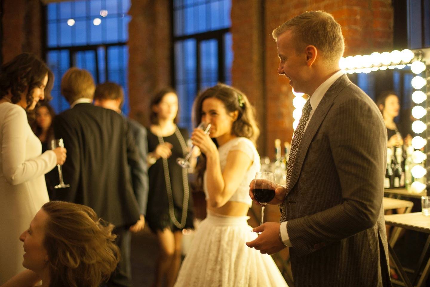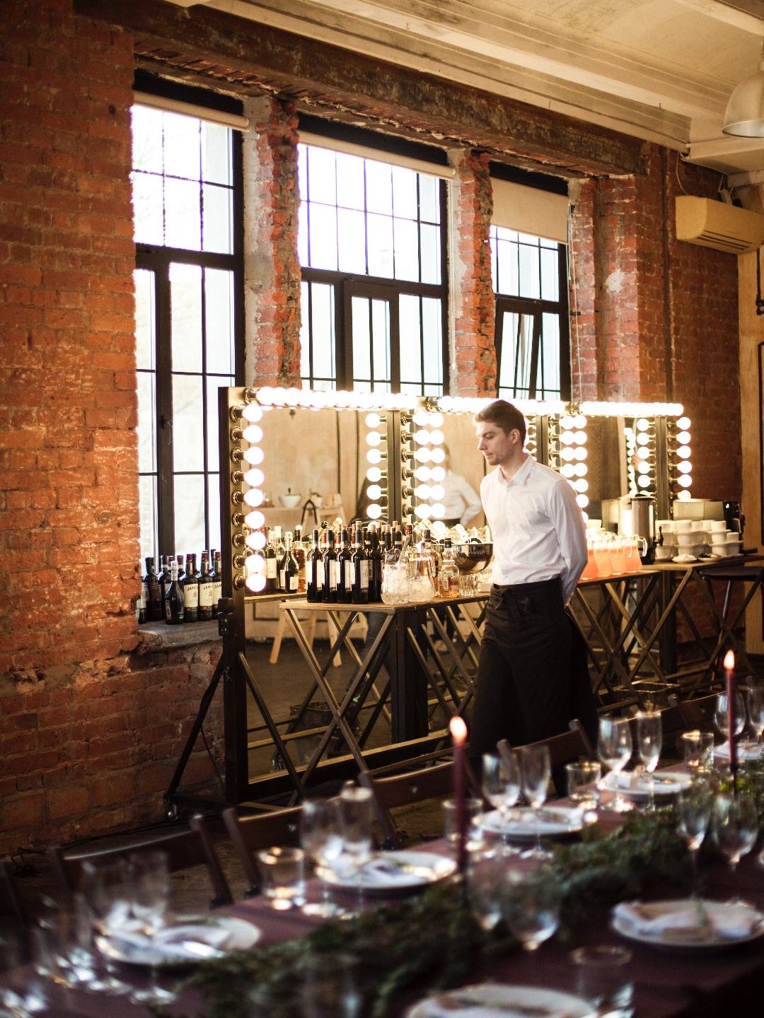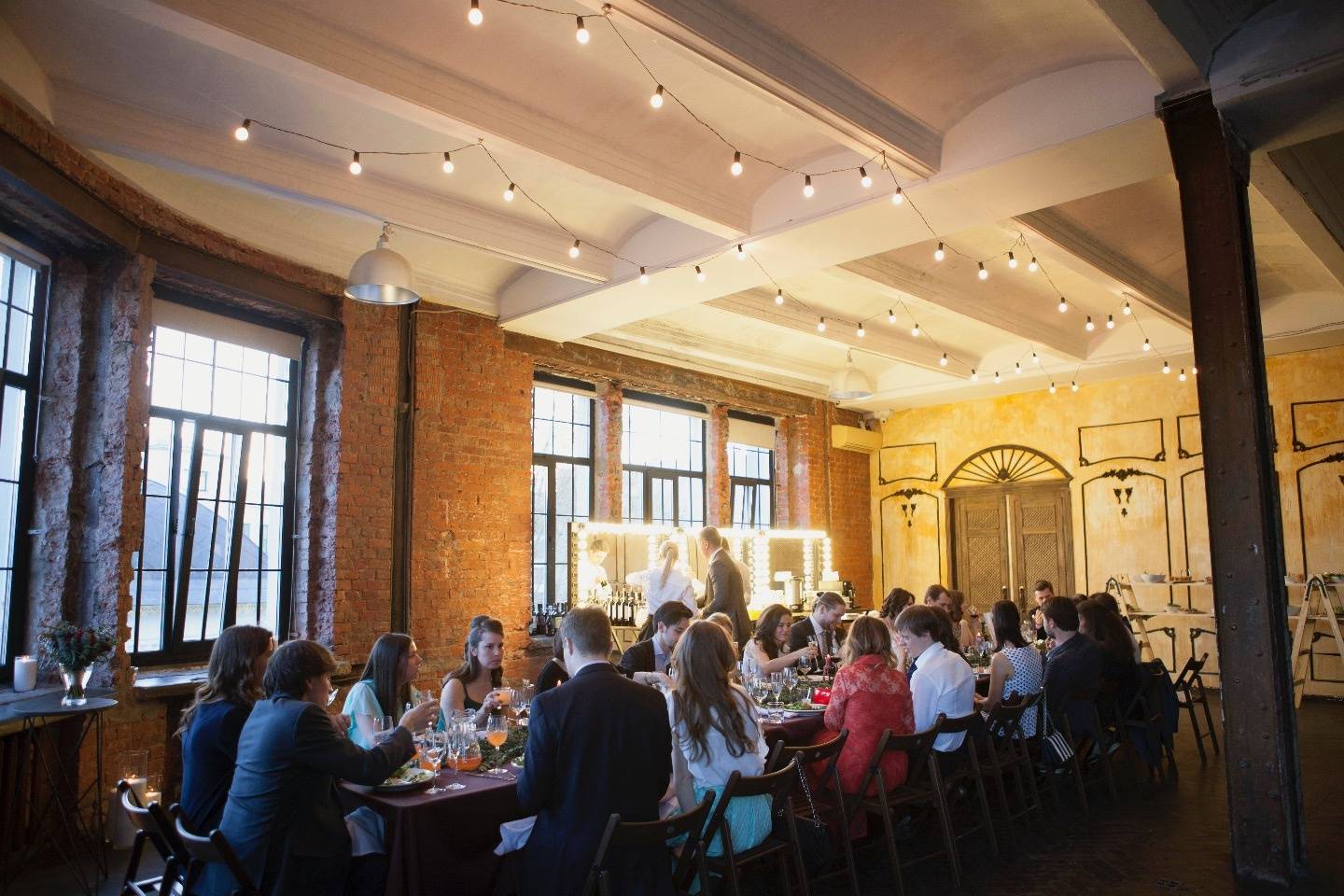 В-третьих, такая свадьба бюджетная, при этом она не проигрывает в необычности и зрелищности. Аренда старой фабрики или лофт-бара с огромной площадью обойдётся куда дешевле, чем бронирование ресторана с примерно таким же метражом.