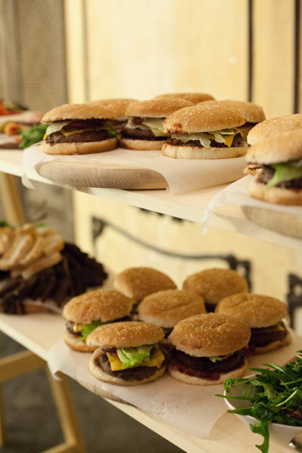 - • Главным блюдом на нашей свадьбе были бургеры. Наши друзья любят хорошие бургеры, поэтому такой подход оценили абсолютно все. Безусловно, мы не забыли и о нескольких приглашенных вегетарианцах, для которых было разработано особое меню.