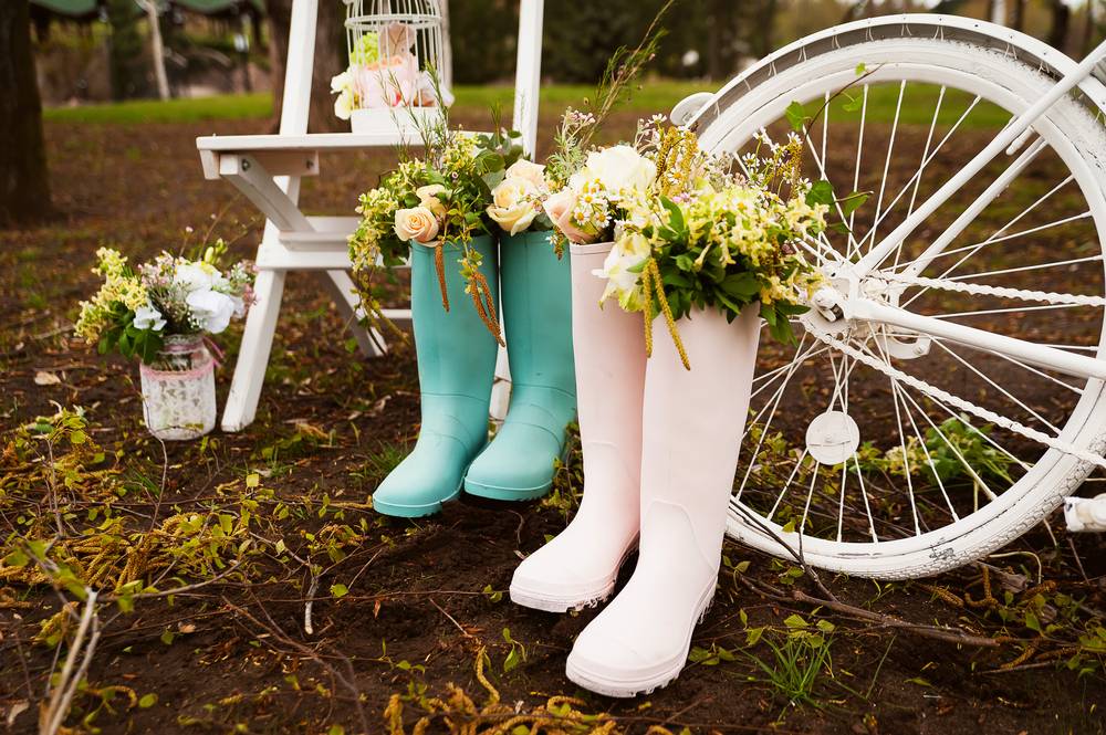 Главное – чтобы ножки были сухими. Идею с выбором одинаковых сапог для жениха и невесты удастся выгодно обыграть на фотосессии.