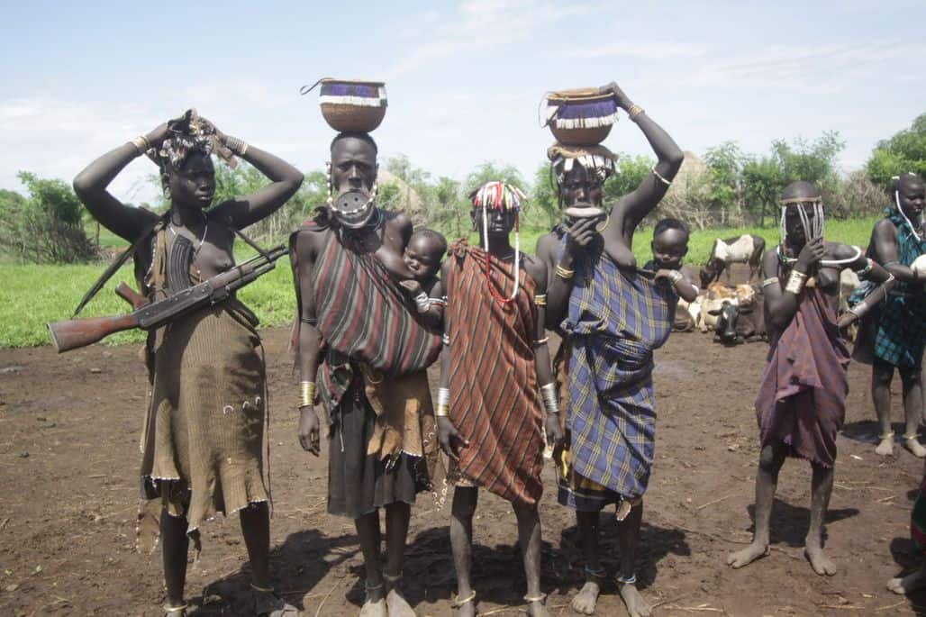 В Эфиопии существует еще более необычная традиция: за полгода до свадьбы представительницам племени Сурма приходится разрезать нижнюю губу (предварительно удалив в этом месте зубы) и ставить туда глиняный диск. При этом больший его диаметр подтверждает богатое приданое, а главное предназначение диска – оберегать девушку от злых духов, которые проникают в тело через рот.