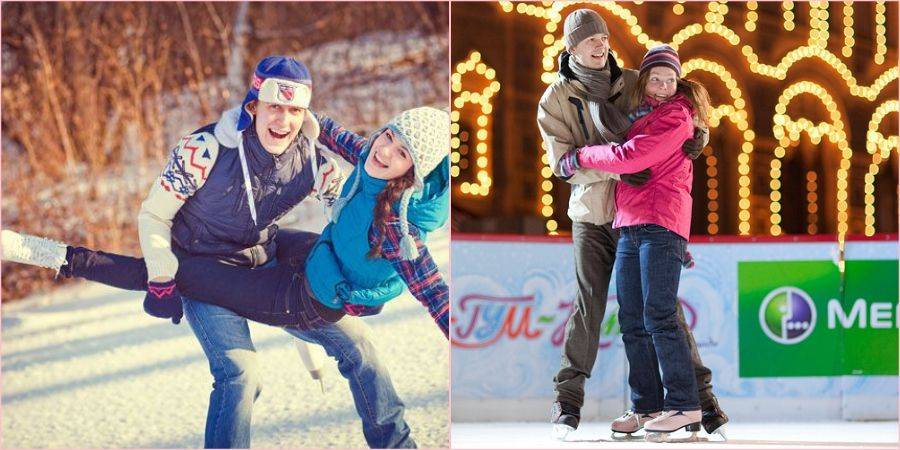Покататься на коньках это очень уместно для романтичного времяпровождения в зимний сезон. Такие фотоснимки получатся позитивными и уникальными, а Вы еще сможете и развлечься.