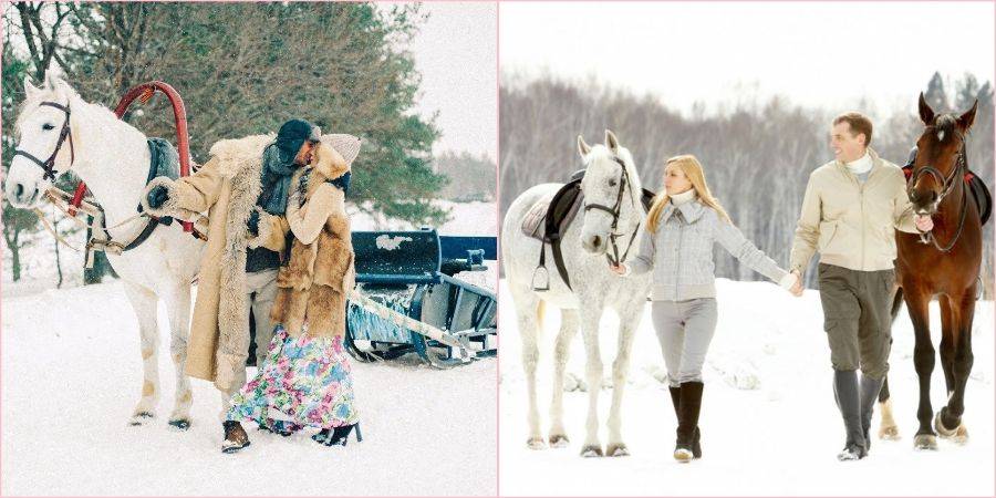 В заснеженном лесу на лошадях Ваша пара будет смотреться невероятно сказочно и эффектно, как в настоящей рождественской сказке.