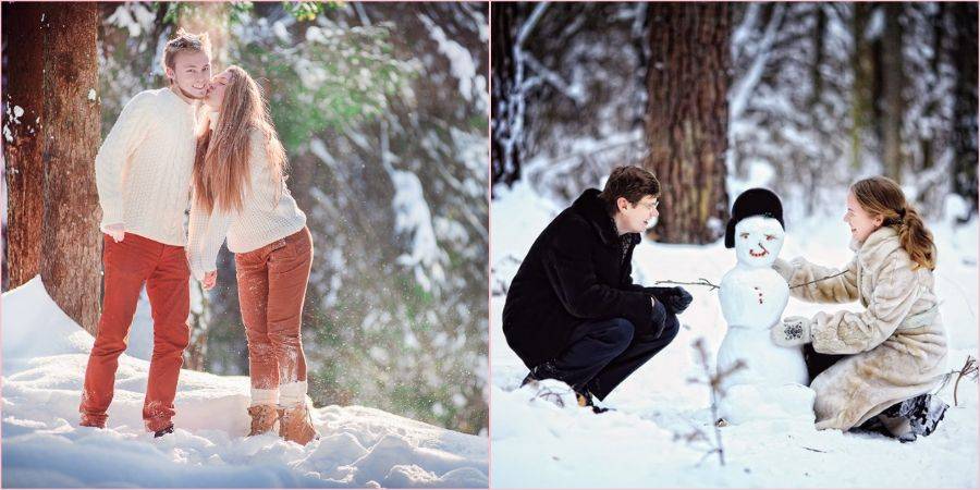 Поиграйте в снежки, слепите снеговика и поваляйтесь в сугробах, так Вы точно получите прикольные фотографии.