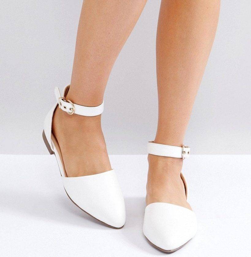 Какие балетки подойдут в качестве свадебной обуви для невесты? Белые или пастельные, можно с небольшой перфорацией, чтобы ноги не потели в жару. Изюминкой балеток может стать цветочный принт или небольшое украшение в виде броши на носике.