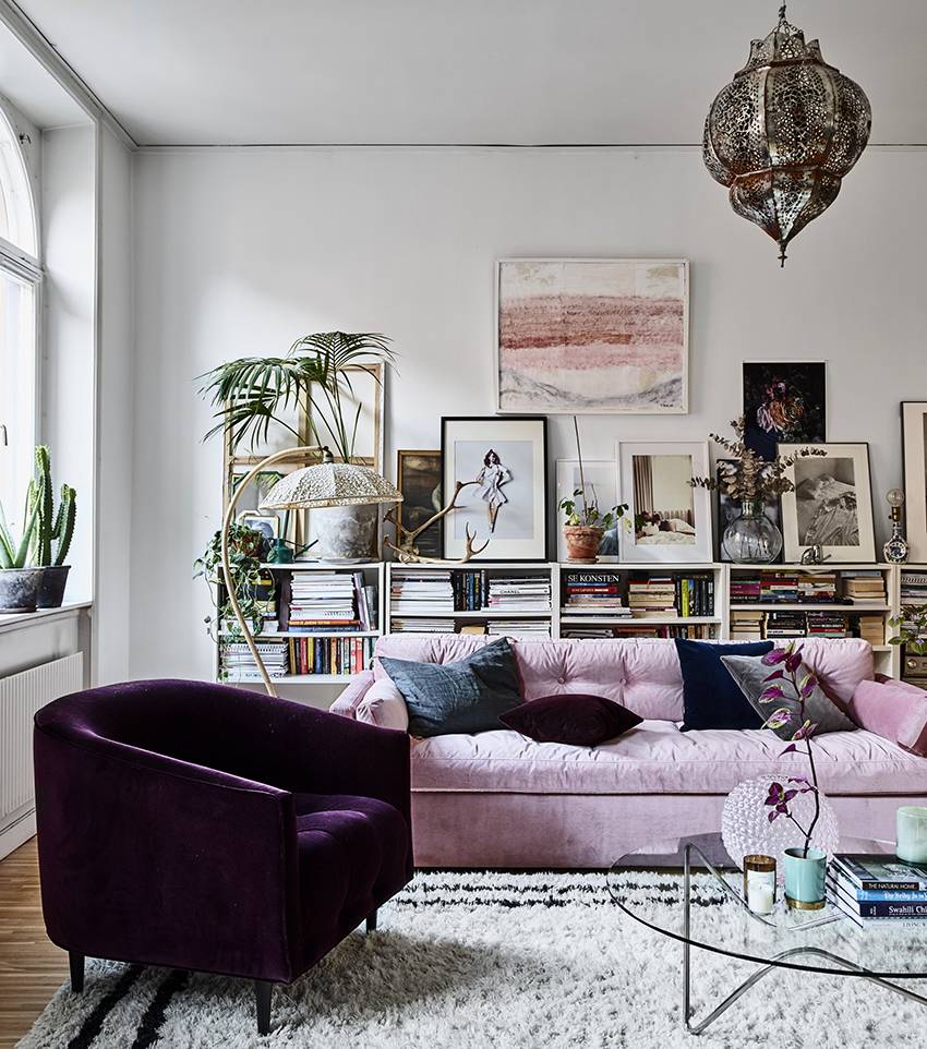В интерьере бохо классика гармонично сочетаются простые и необычные предметы