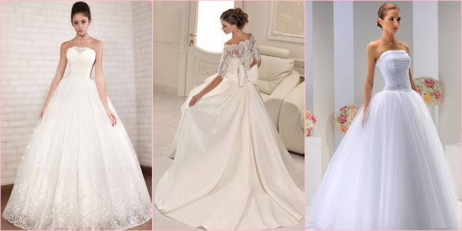 - Бальное платье выгодно преподнесет фигуру новобрачной – корсет стянет талию и приблизит ее к идеальной, а грудь, наоборот, подчеркнет, объемная юбка прикроет недостатки, пышность же добавит торжественности.